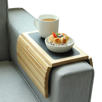 Bamboo Sofa Arm Tray - Newly Upgraded Small TV Side Table for Your Couch - Ideal Cup Holder, Drink Coaster
